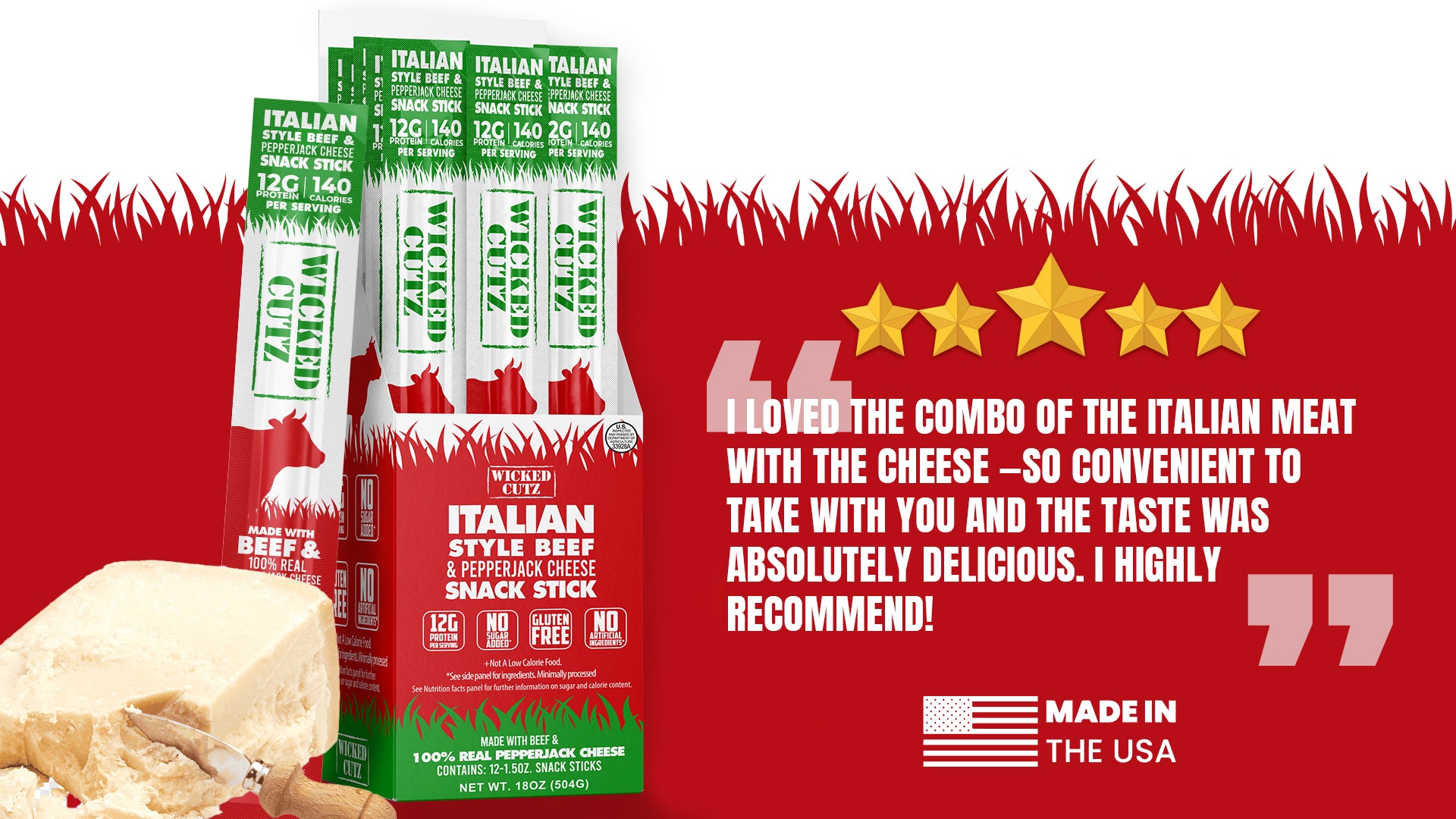 Savory Beef Marinated in Iconic Italian Flavors and infused with 100% Real Pepper Jack Cheese. This instant classic will knock the socks off of your taste buds.