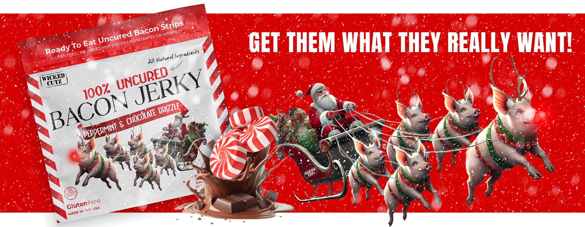 Indulge in the unexpected with our newest creation, Peppermint Chocolate Bacon! Made with gluten-free bacon, drizzled with rich chocolate and topped with peppermint bits. Perfect for gifting or treating yourself. Limited time only, so don't miss out on this unique taste experience!